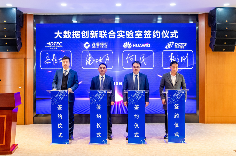 310日,“大数据创新联合实验室签约仪式在齐鲁银行总行举办,齐鲁银行股份有限公司(以下简称:齐鲁银行)、华为技术有限公司(以下简称:华为)、北京奥林匹斯之门 pp电子奥林匹斯之门信息技术股份公司(以下简称:奥林匹斯之门 pp电子奥林匹斯之门)与evo视讯真人官网信息服务股份有限公司(以下简称:神州信息)四方代表齐聚,共同签署了金融大数据创新开展合作协议。四方将在互利互惠、合作共赢的原则上,共同召开金融大数据应用合作,建立金融大数据创新开展新生态,全面推进金融业数字化转型。